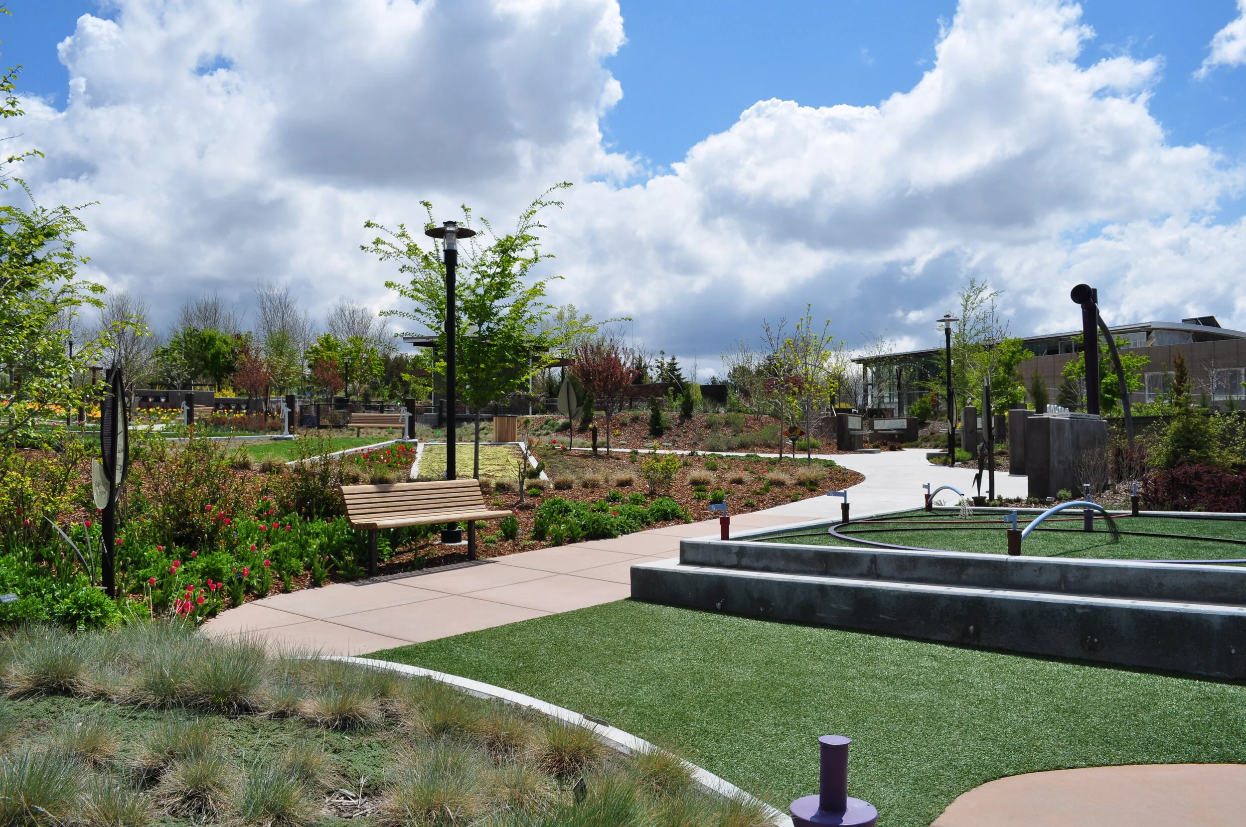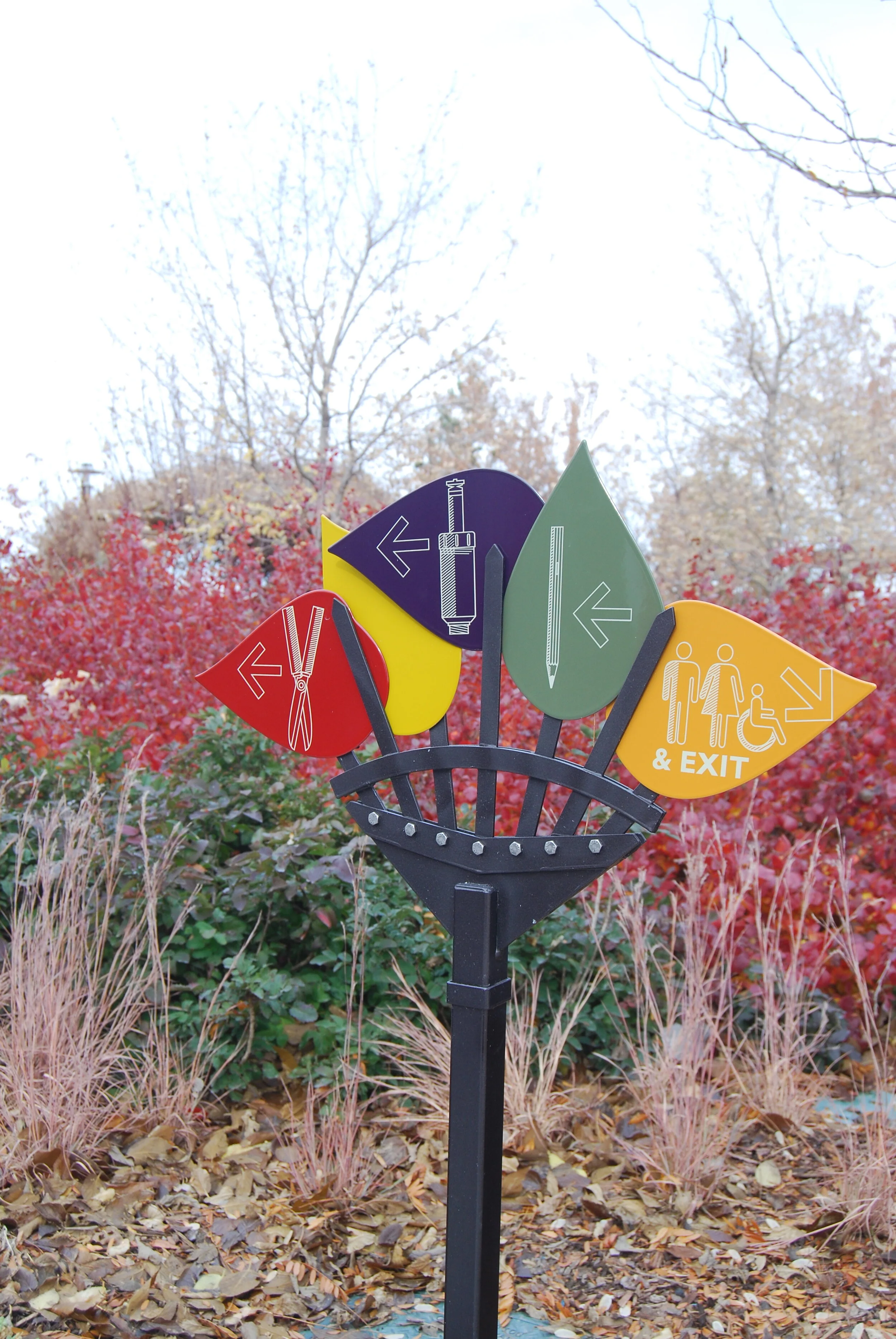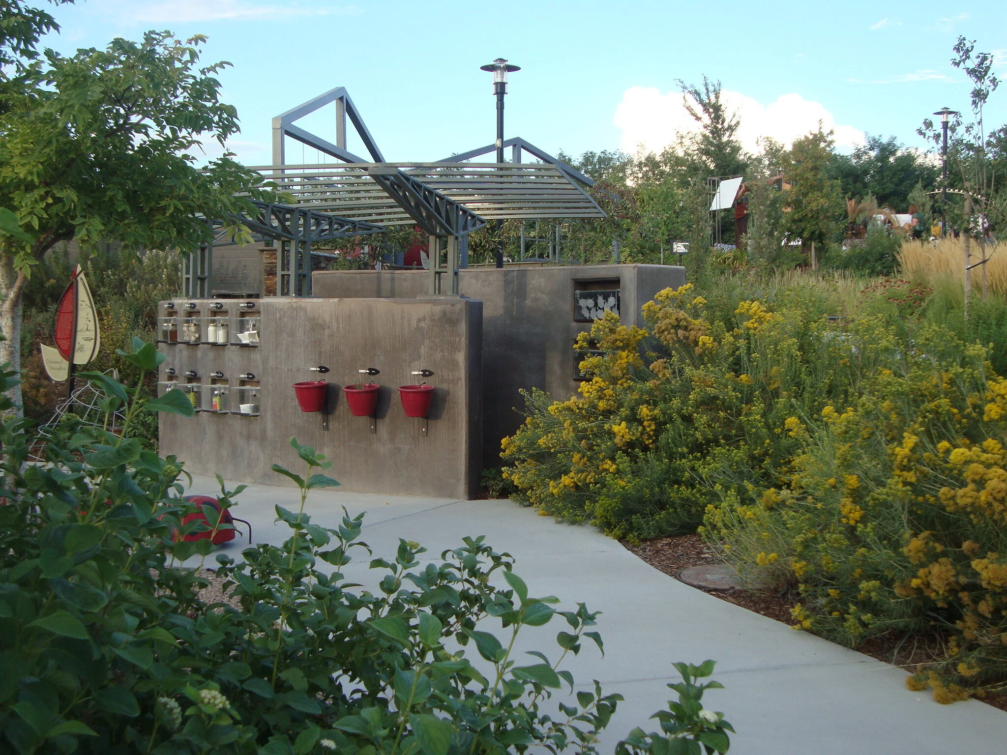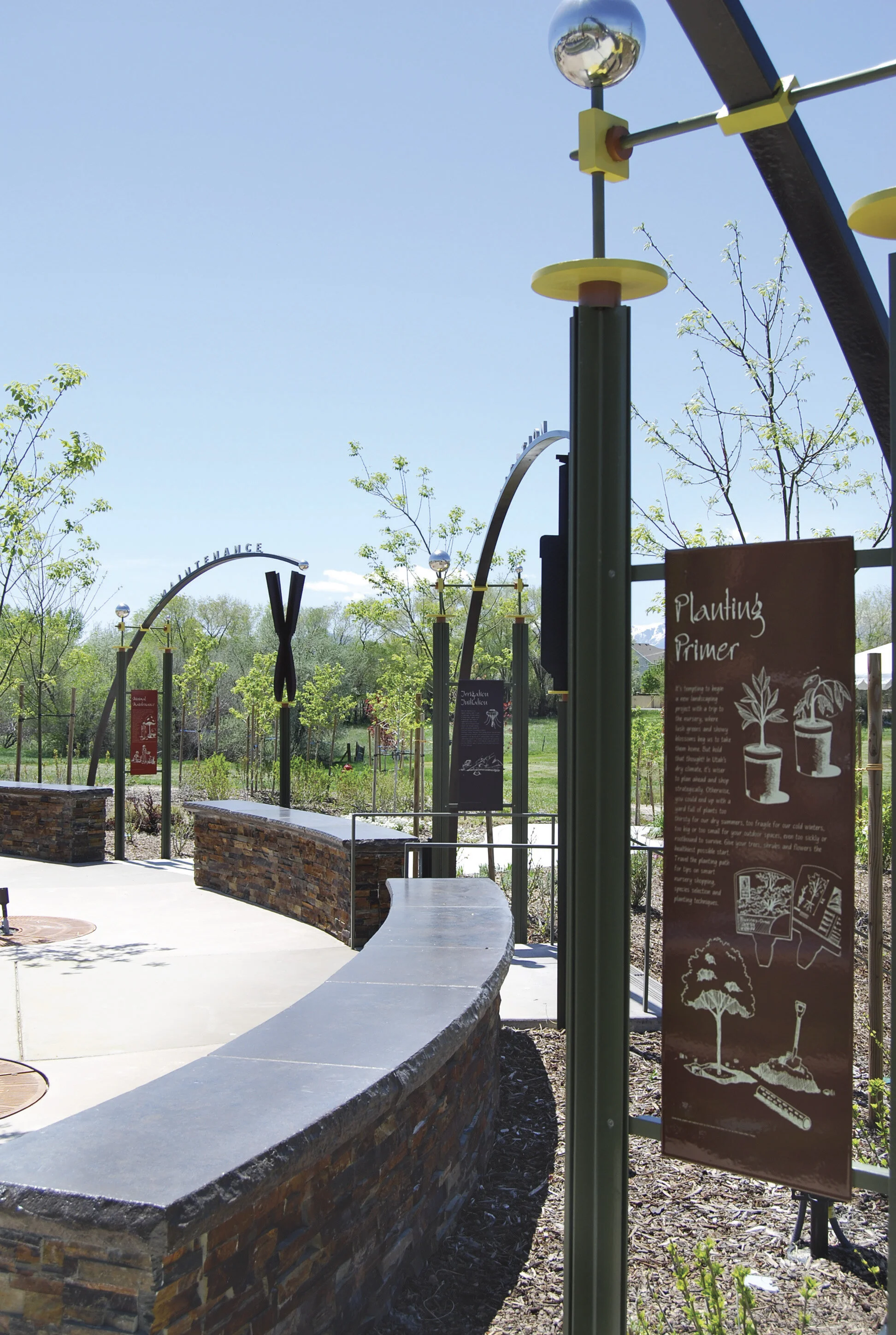 This garden is divided into six main topic areas. There are four "How-To" areas in which the exhibits focus on How To Design, Plant, Irrigate, and Maintain your garden. An additional area focuses on finished garden examples, "The Neighborhood Garden" and at the entry into the Gardens, at the Education Center, there are exhibits that focus on rain water capture as well as biofilter and bioswale exhibits.